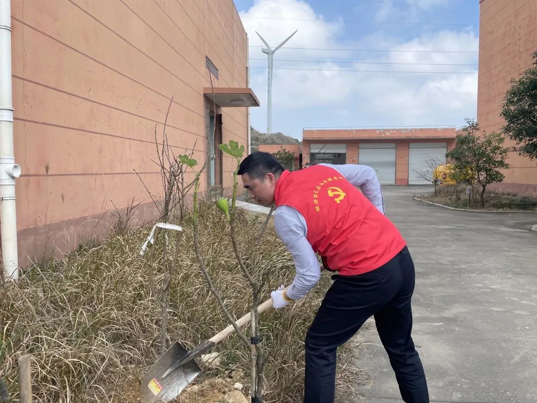 線下,能源公司的黨工團(tuán)志愿者們帶上樹苗、扛起鋤頭,奔赴平陽西灣及蒼南霞關(guān)兩個(gè)風(fēng)電場,在暖陽下,挖坑、栽樹、壓土、澆水...... 各個(gè)環(huán)節(jié)銜接有序,配合默契,認(rèn)真地完成每一道工序,一棵棵新苗就穩(wěn)穩(wěn)地在土里扎下了根,為風(fēng)電場的春天又增添了一抹新綠。